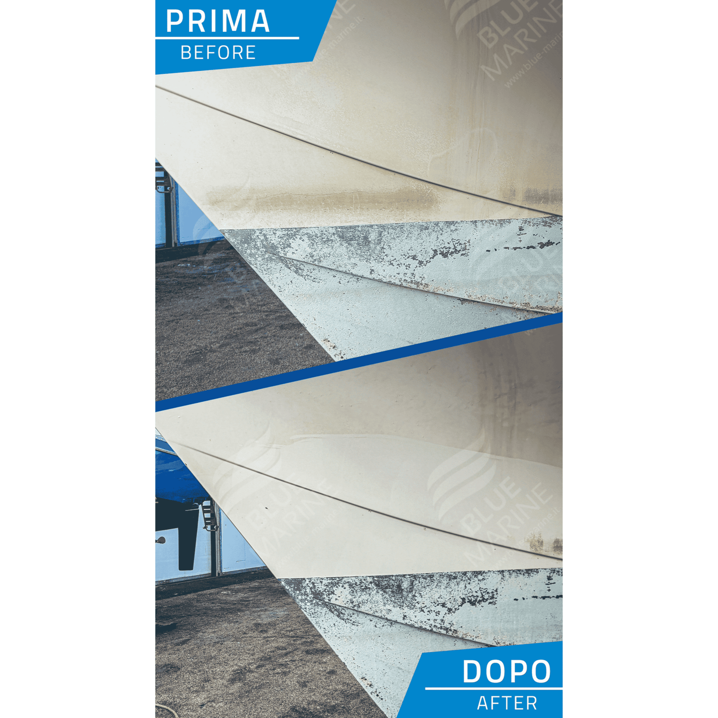 Blue Marine Laser Gel ist ein professioneller, hochwirksamer, saurer Gel-Entkalker, der speziell zur Entfernung von Kalk, Bewuchs, Rost und Vergilbung an Booten und Schlauchbooten entwickelt wurde. Dank seiner einzigartigen Gelformel haftet das Produkt perfekt an senkrechten Flächen und löst selbst hartnäckige Ablagerungen gründlich auf. Ideal zur Reinigung und Aufhellung von GFK-Rümpfen, Außenbordmotoren und Außenbordmotoren.