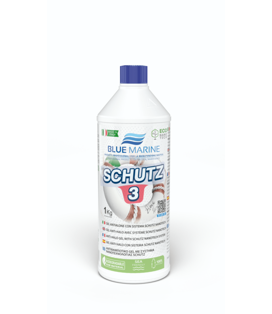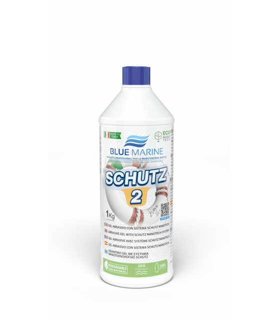 Schutz by Blue Marine is a water-based abrasive gel (polish), free from silicone. Easily removes scratches and dull spots, leaving the gelcoat shiny and scratch-free. Excellent for stainless steel and chrome.